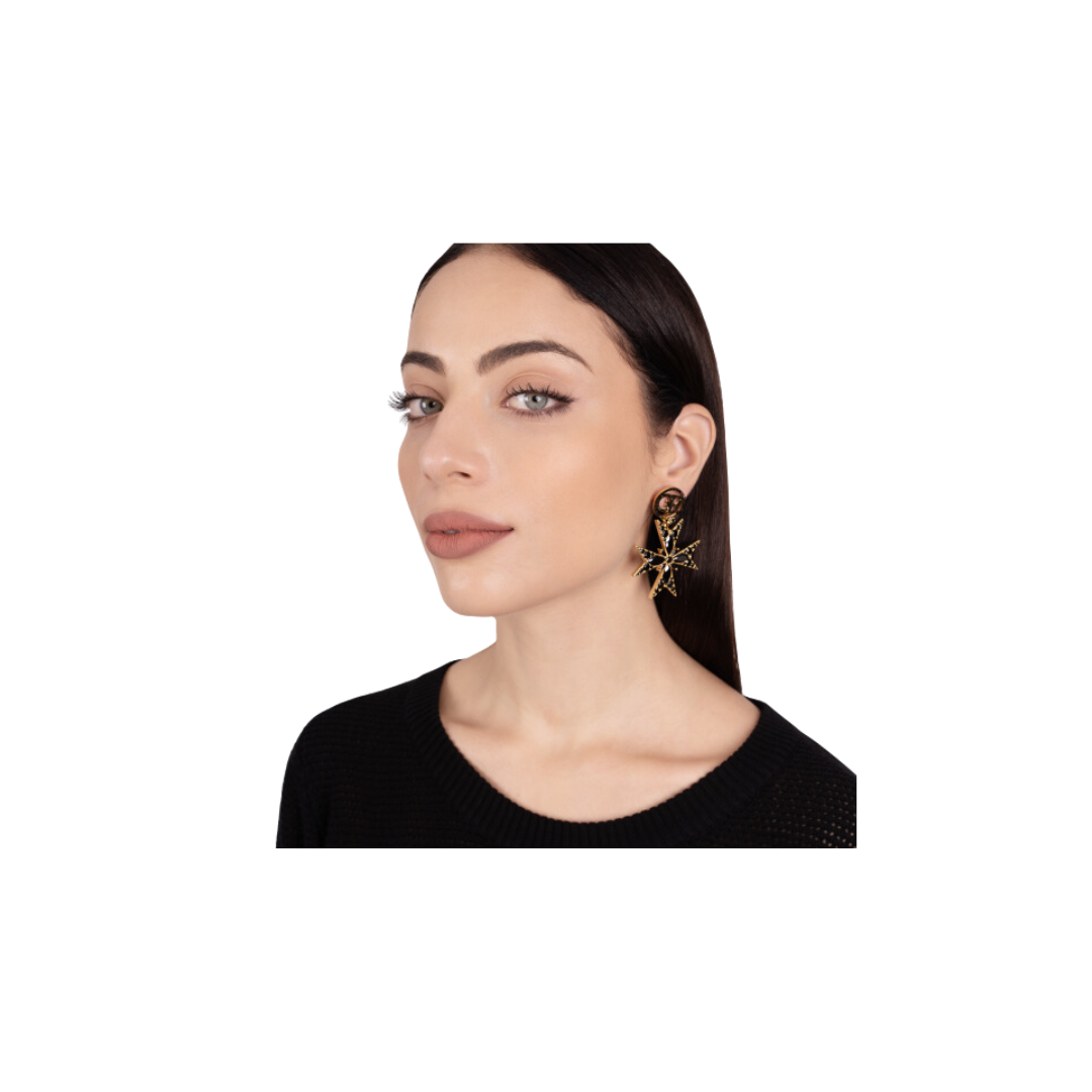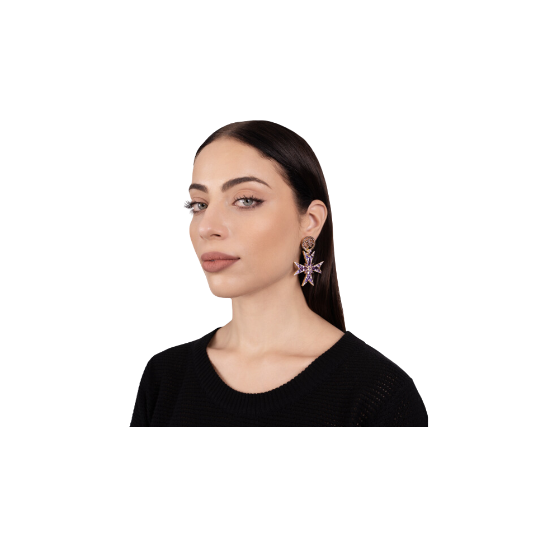Show your style and sparkle in these 8-point Cross Earrings encrusted with the C&R logo. The gorgeous crystal glass pendants add an elegant touch to your look. Step up your fashion game with these unique earrings!
