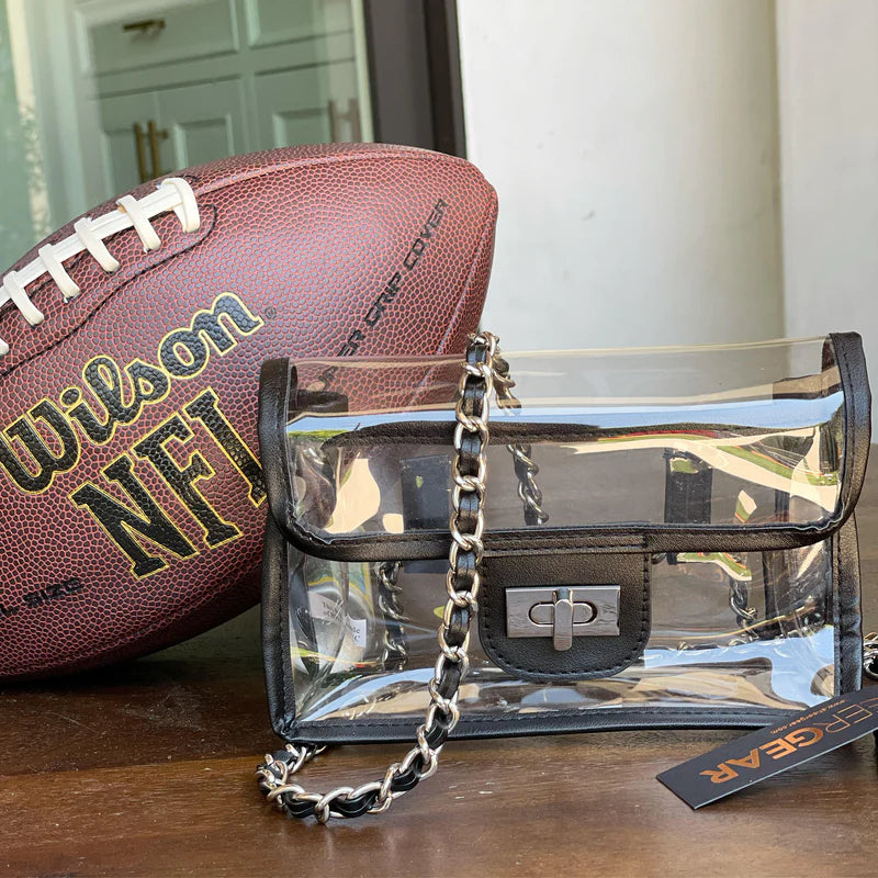 The ANNIE FANNY PACK is our most versatile bag. The chain strap is removable; making it possible to wear this bag as a fanny pack around the waist, a shoulder bag, cross body or a clutch. Made in our durable PVC plastic, faux leather trim, and turn lock closure, the Annie is perfect for the ladies who want to be hands free.