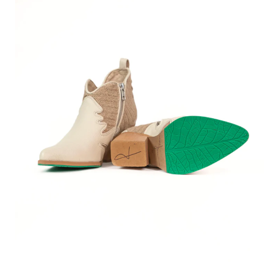 Our Atlantis vegan ankle boots in beige with jute are made of plantbased vegan apple leather in combination with natural jute. The cutout details around the ankle and the deep V cut out on the front give these boots a rock chic look. But we did not only think about the outside of these boots.