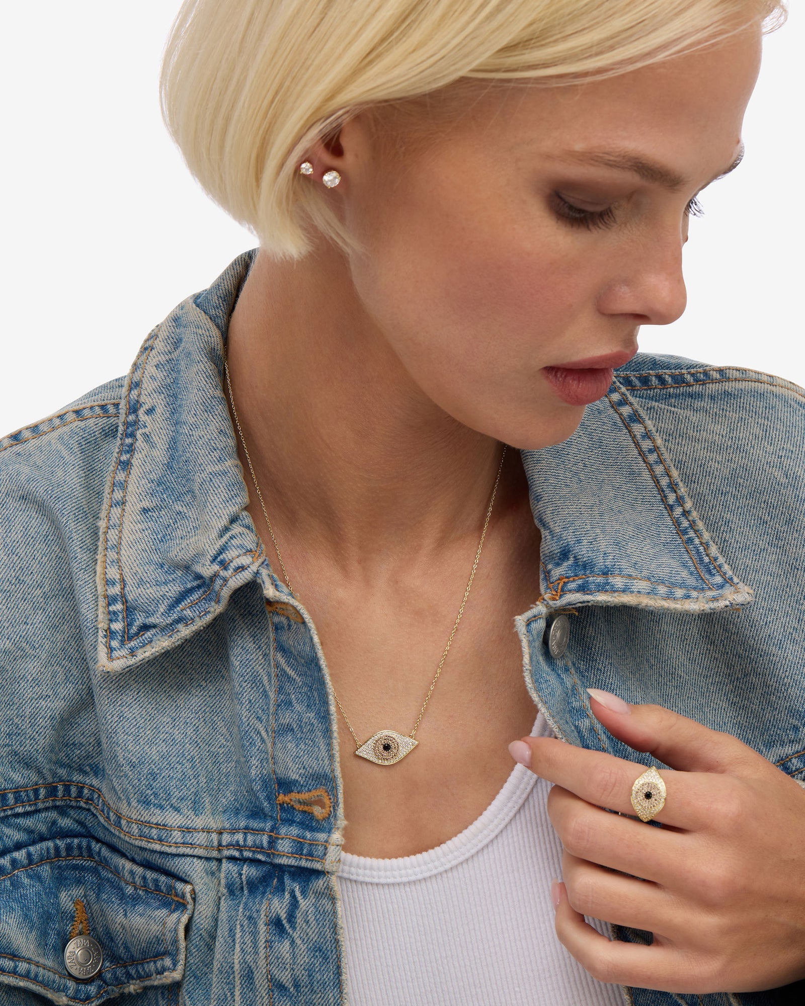 Good Vibes Only! Get your daily dose of protection, strength, and courage with our Black Evil Eye Necklace. This striking piece is designed to ward off every color of envy. Wear it alone or layer it with other necklaces for a chic, modern way to tell your story.