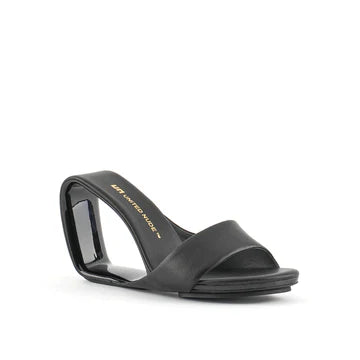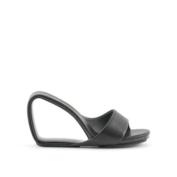 United Nude's launch product, the Mobius, was revealed in 2003 and has since become an icon in the world of design. The style was born from a conceptual development of the Möbius strip, a single-sided surface with no boundaries. Its distinct shape was inspired by transforming the frame of Mies van der Rohe's Barcelona Chair into a single band, uniting the upper, sole, footbed and heel into one infinite piece.