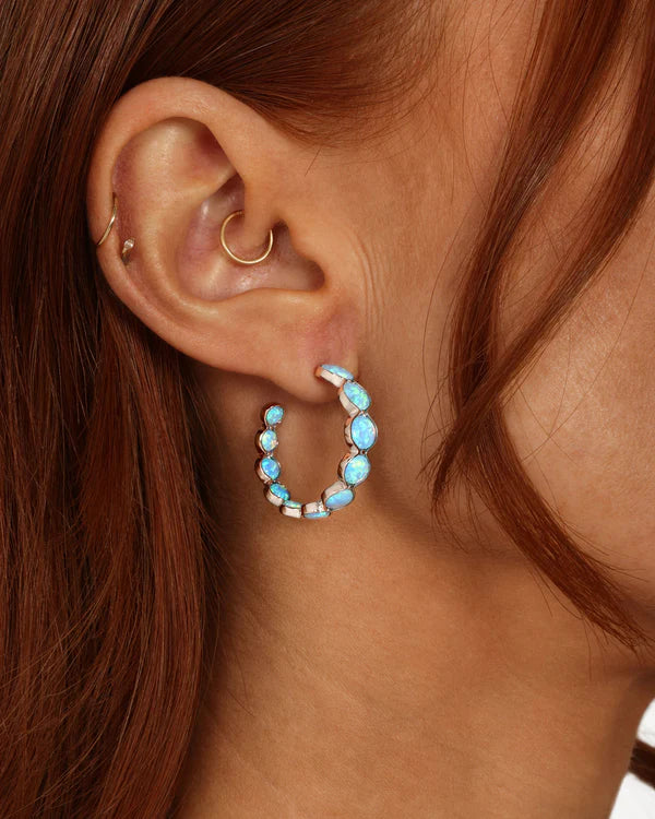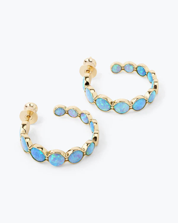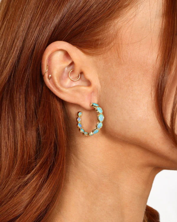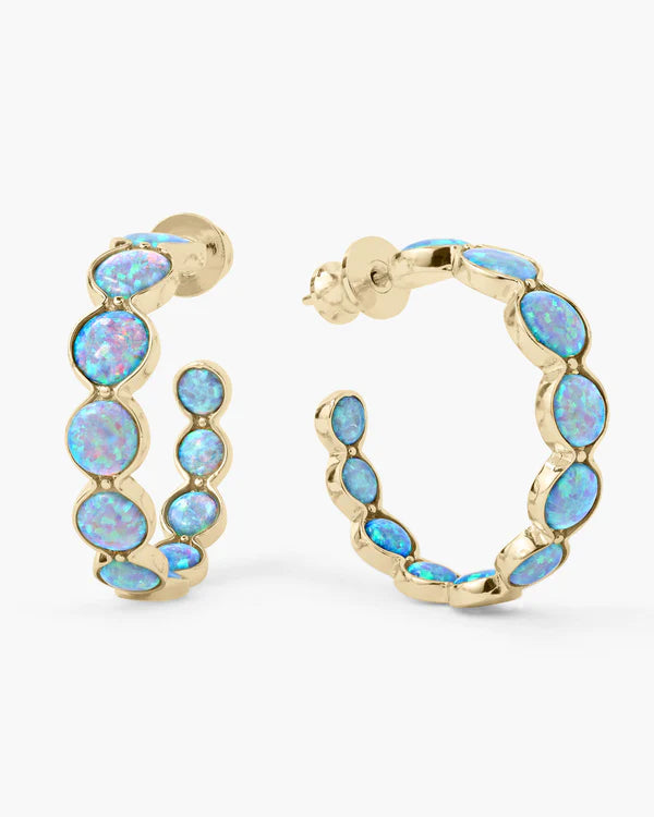 She's an Icon Blue Opal Hoops 1" Gold Blue Opal